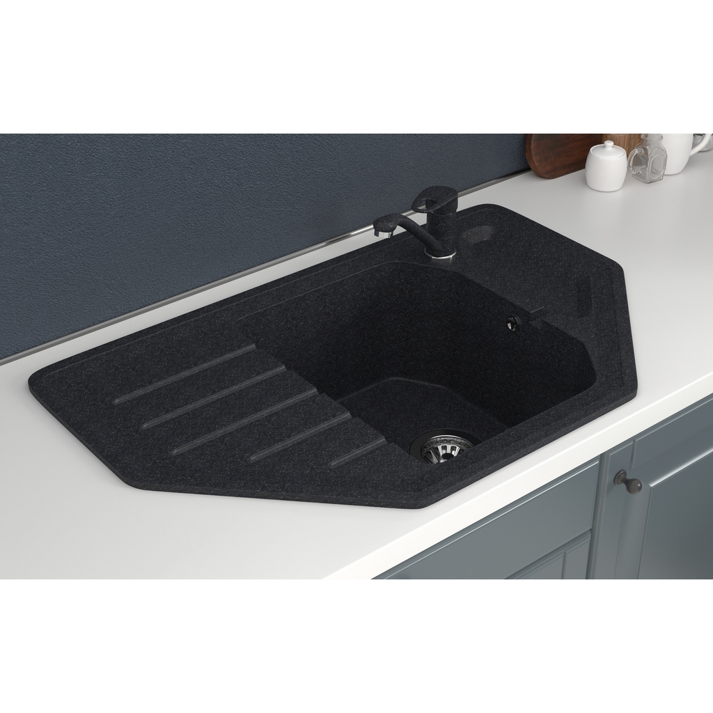 Мойка ML-GMS17 СТАНДАРТ угловая с крылом, черный (308), 780*485*190мм