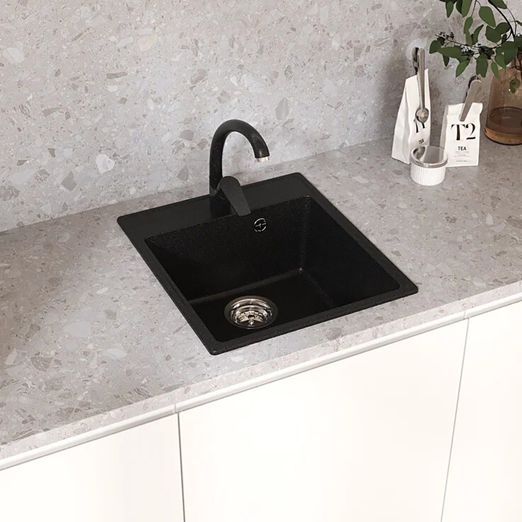 Мойкa ML-GMU02 УЛЬТРА прямоугольная, черный камень, 425*485 мм (глуб. чаши 175)