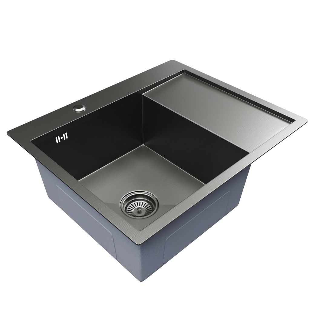 Мойка настол.монтаж 60х50 (3,0) лев. вып 3 1/2 MIXLINE PRO С ФАСКОЙ 20см с сифоном (черный графит)