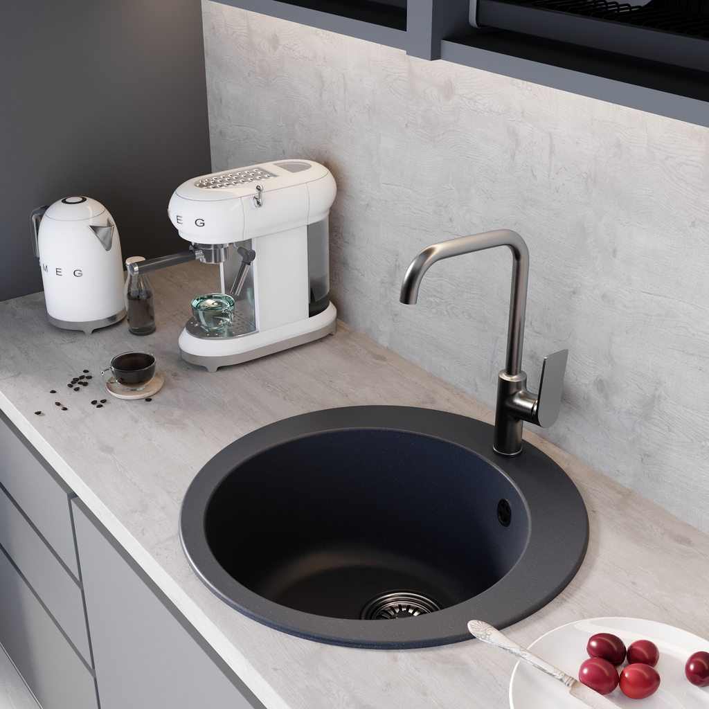 Мойкa ML-GM13 КОМФОРТ круглая, антрацит (343), 495мм (глуб. чаши 200)