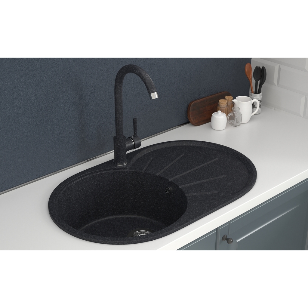 Мойка ML-GMS05 СТАНДАРТ овальная с крылом, черный (308), 740*455*190мм
