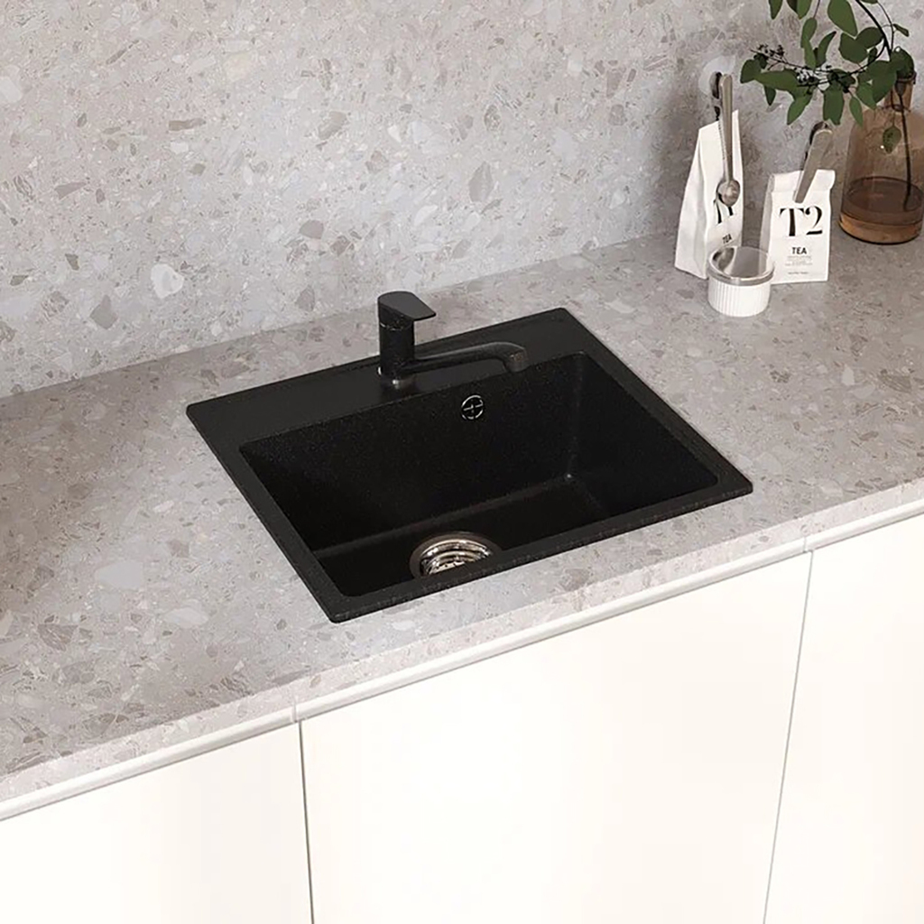 Мойкa ML-GMU03 УЛЬТРА прямоугольная, черный камень, 490*420 мм (глуб. чаши 170)