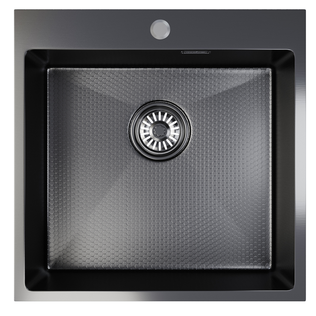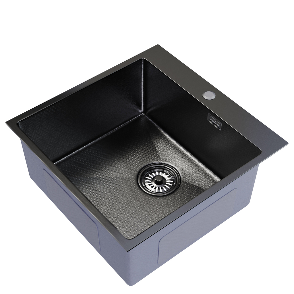 Мойка настол.монтаж 50х50 (2,0) вып 3 1/2 MIXLINE PRO 20см с сифоном (черный графит НАНО декор)