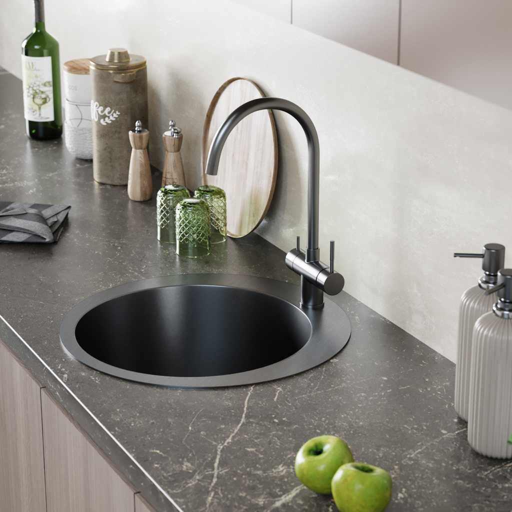 PVD-покрытие уникально тем, что парообразный металл впитывается в поверхность мойки на молекулярном уровне и образует микрослой на поверхности.