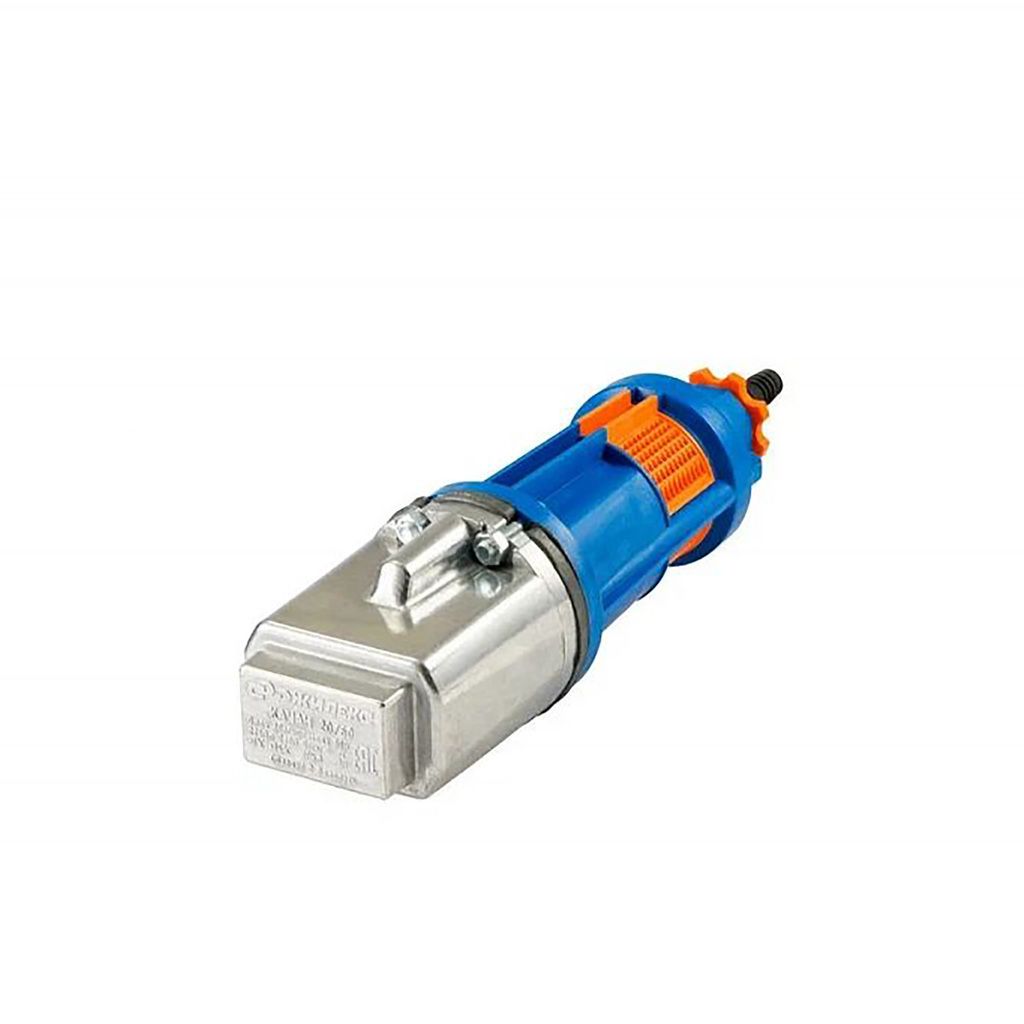 - В верхней части симметрично расположены две проушины, которые позволяют подвесить насос в строго вертикальном положении. Помимо этого из крышки насоса выходит водостойкий кабель длинной 25 м с вилкой.