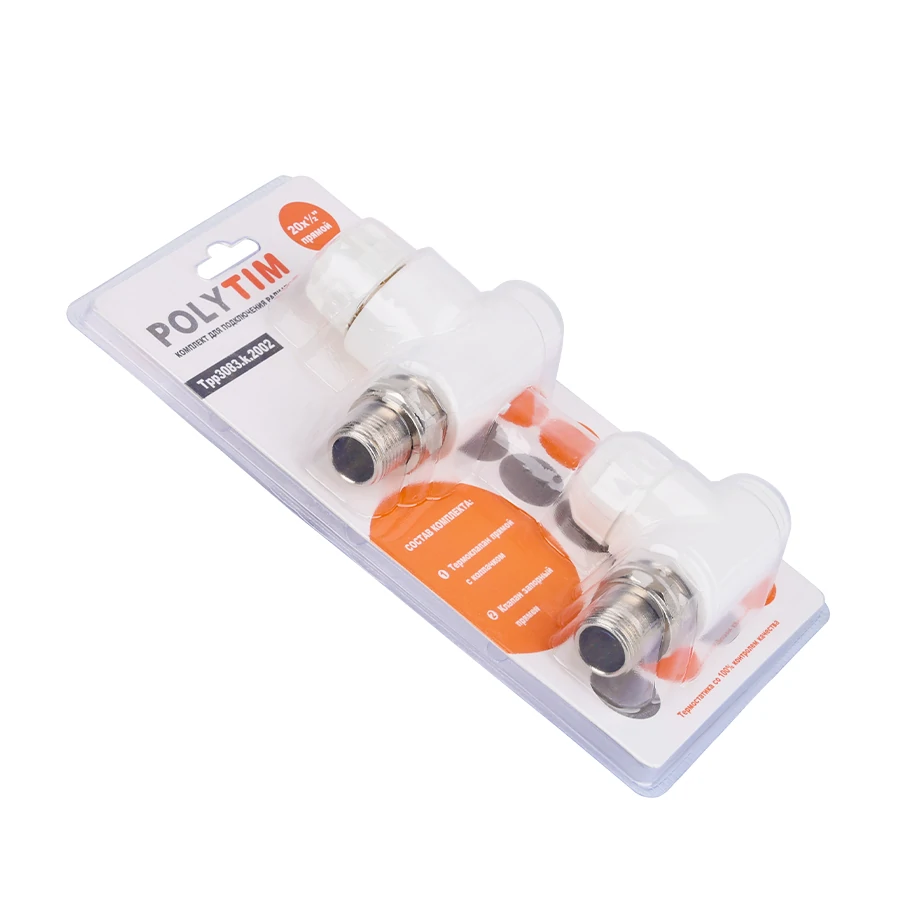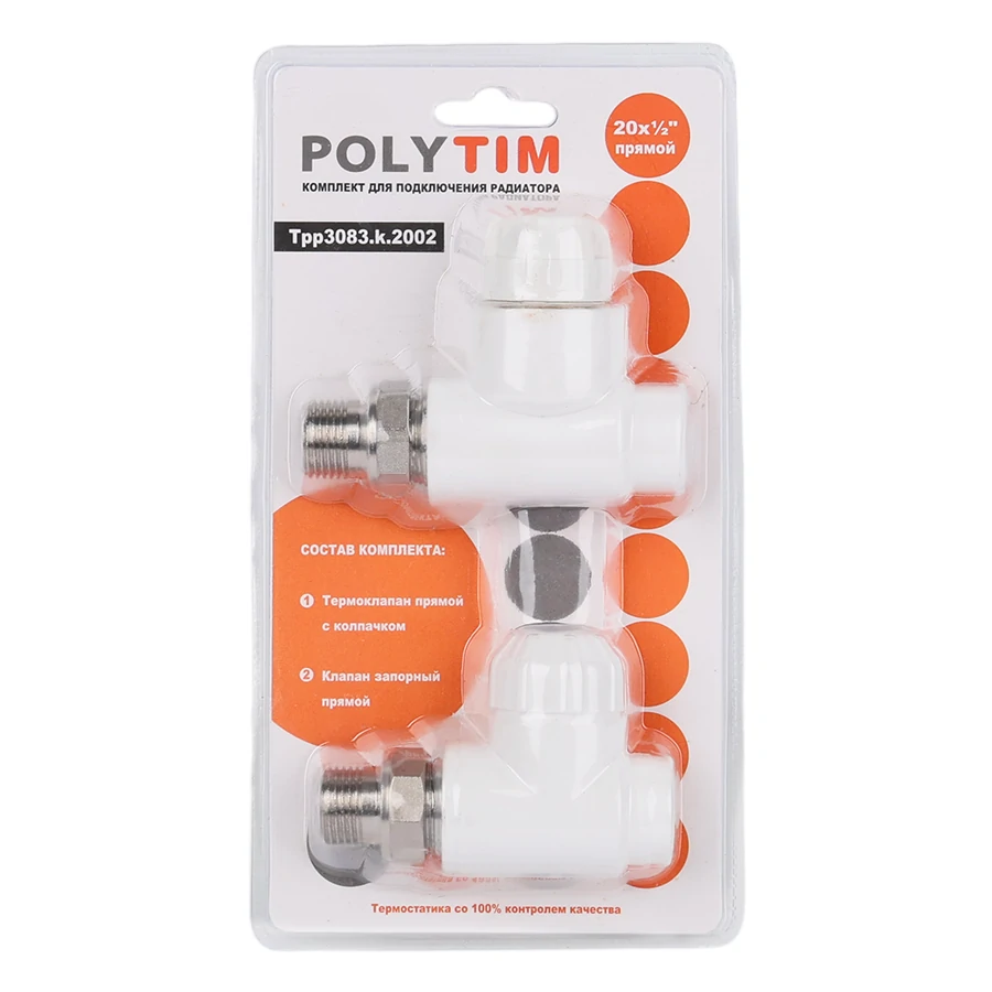 Комплект (Термостатический клапан прямой с колпачком, клапан запорный прямой) PPR 20*1/2