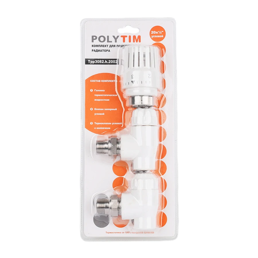 Комплект (Термостатический клапан угловой с колпачком, клапан запорный угловой, термостатическая гол