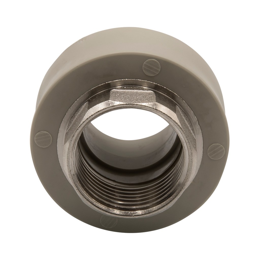 Комбинированные полипропиленовые фитинги служат для перехода с пластикового соединения на резьбовое трубное соединение.