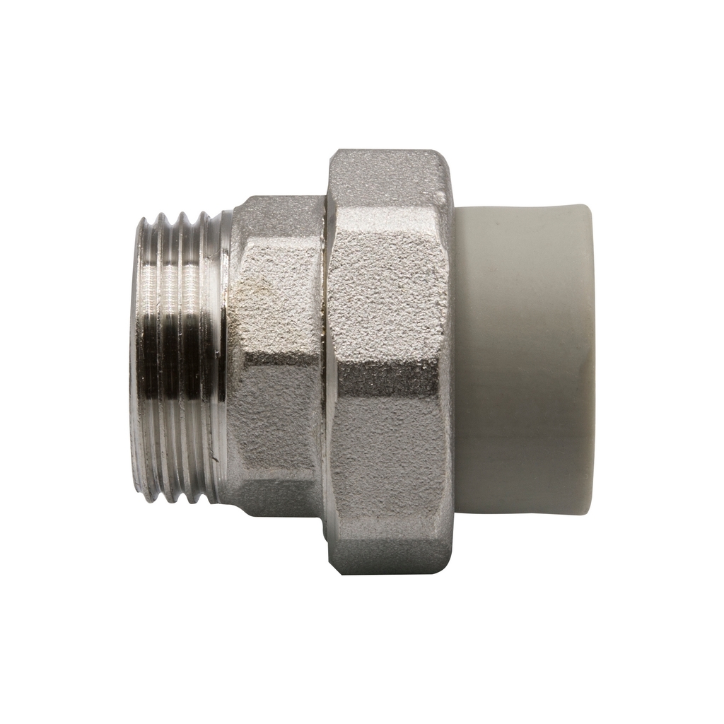Комбинированные полипропиленовые фитинги служат для перехода с пластикового соединения на резьбовое трубное соединение.