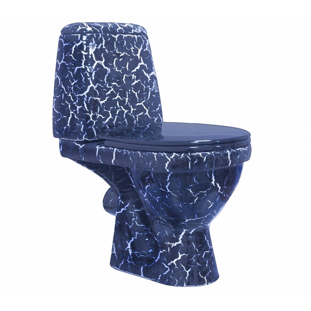 Унитаз-компакт "Премьер" синий кракелюр (гориз, нижн, сид. полип., 2-кн.арм) (Rosa)