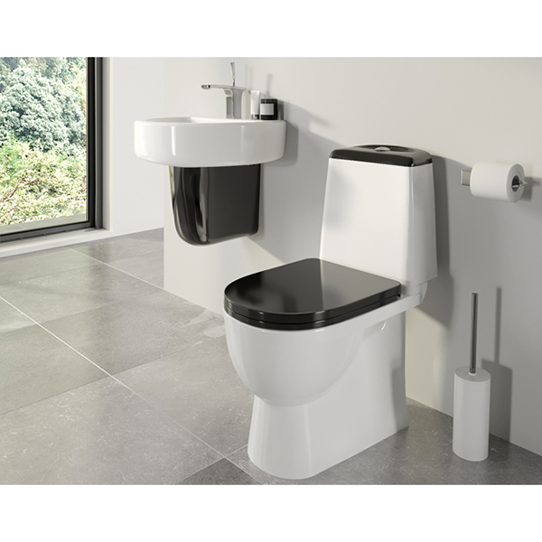 Коллекция подразумевает возможность использования цветных полупьедесталов и цветных сидений для унитазов-компактов.