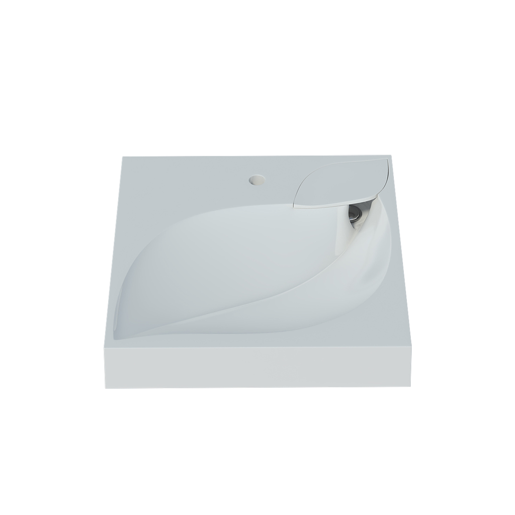 Изделие имеет чашу оригинального листовидного дизайна, а отверстие слива изысканно спрятано под съемной мыльницей.