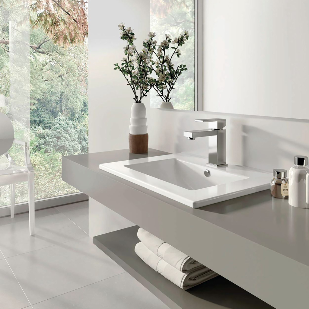 Белоснежная сантехника с минималистичными формами добавляет воздух в помещение и становится основой для свободы дизайнерских решений.Мебельный умывальник Quadro 75 подойдет для установки как на тумбу, так и на столешницу.