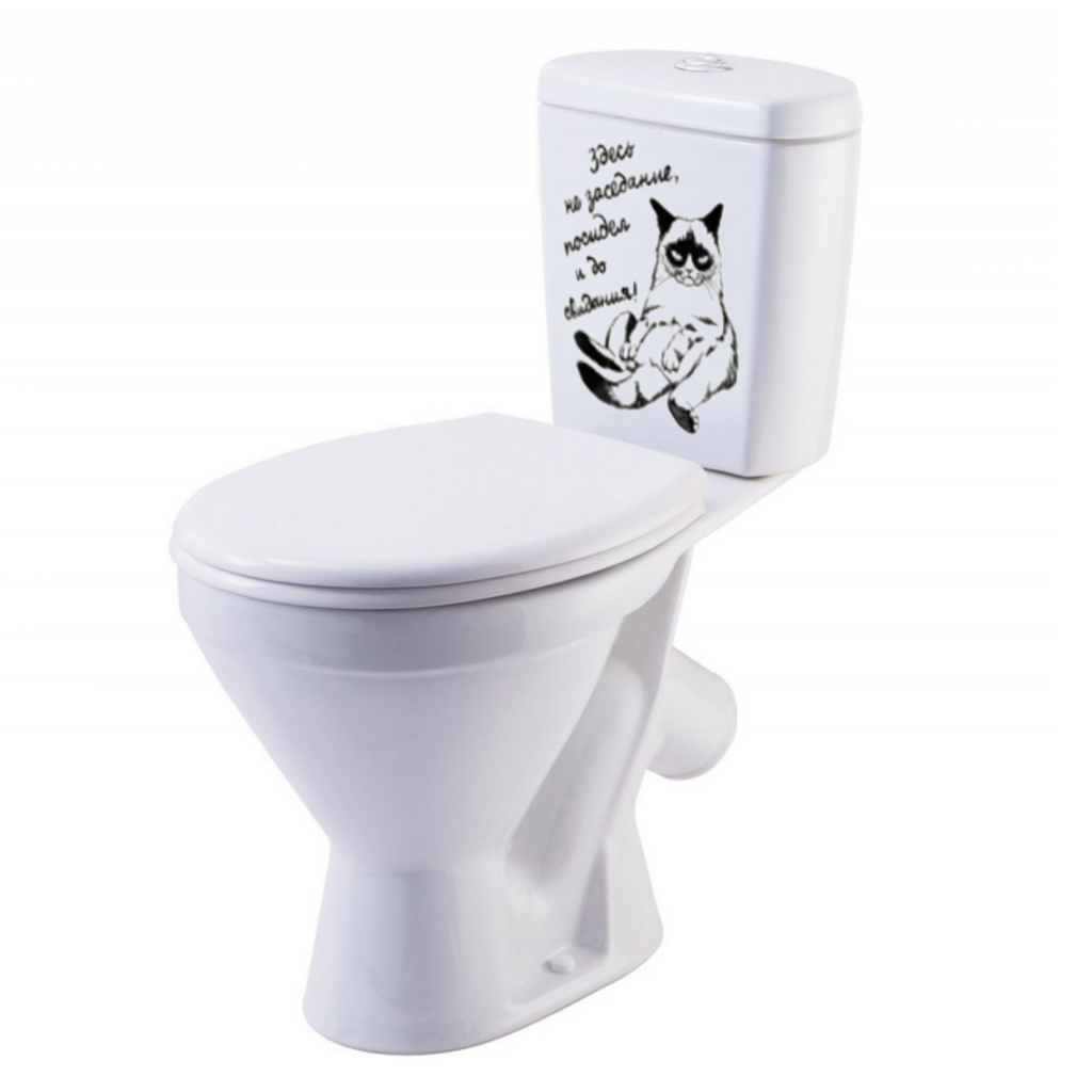 Унитаз-компакт "Стандарт" Декор "Кот на заседании" (кос,ниж,сид. полип.арм) (Rosa)