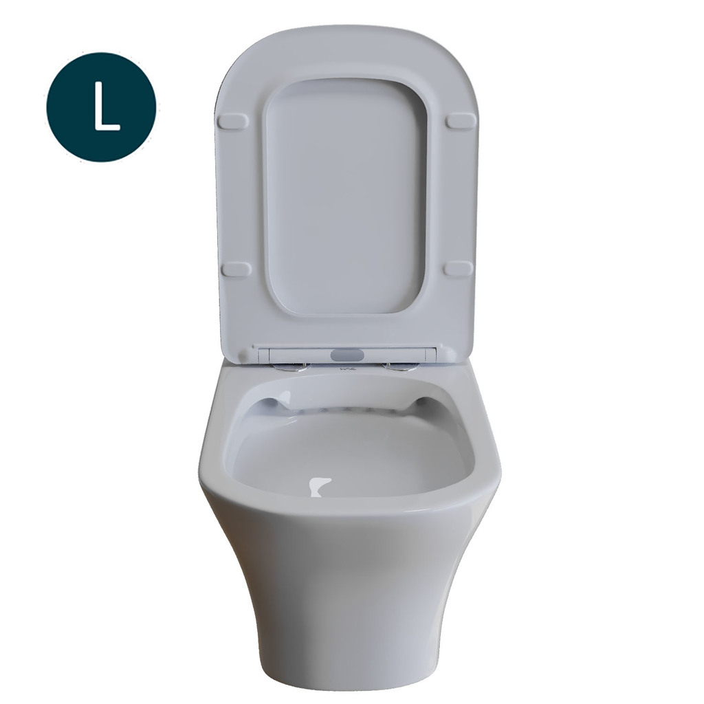 • Безободковая чаша — исключает труднодоступные зоны, предотвращает скопление бактерий и упрощает уход