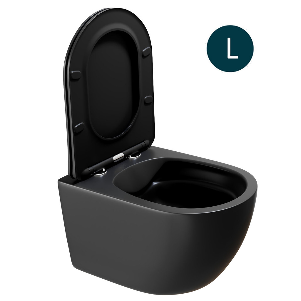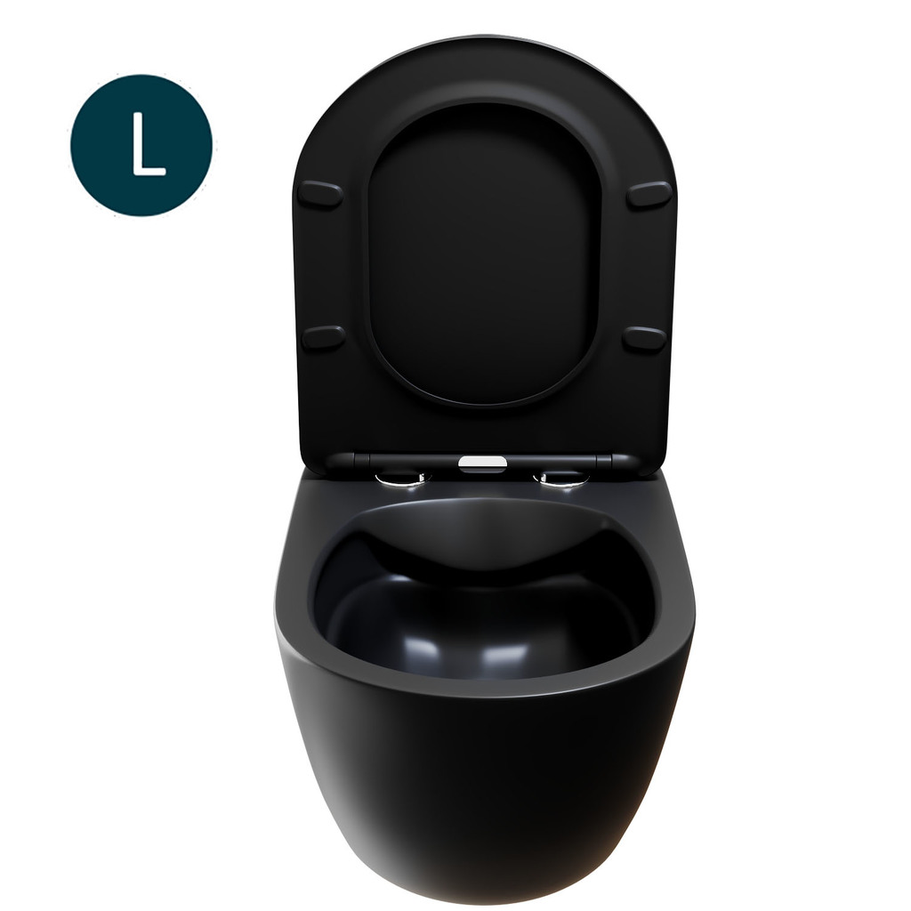 Унитаз подвесной безободковый WAVE ROUND сид. дюропласт, м/л, быстр, ЧЕРНЫЙ матовый (L)