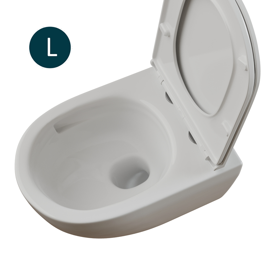 • Безободковая чаша — исключает труднодоступные зоны, предотвращает скопление бактерий и упрощает уход
