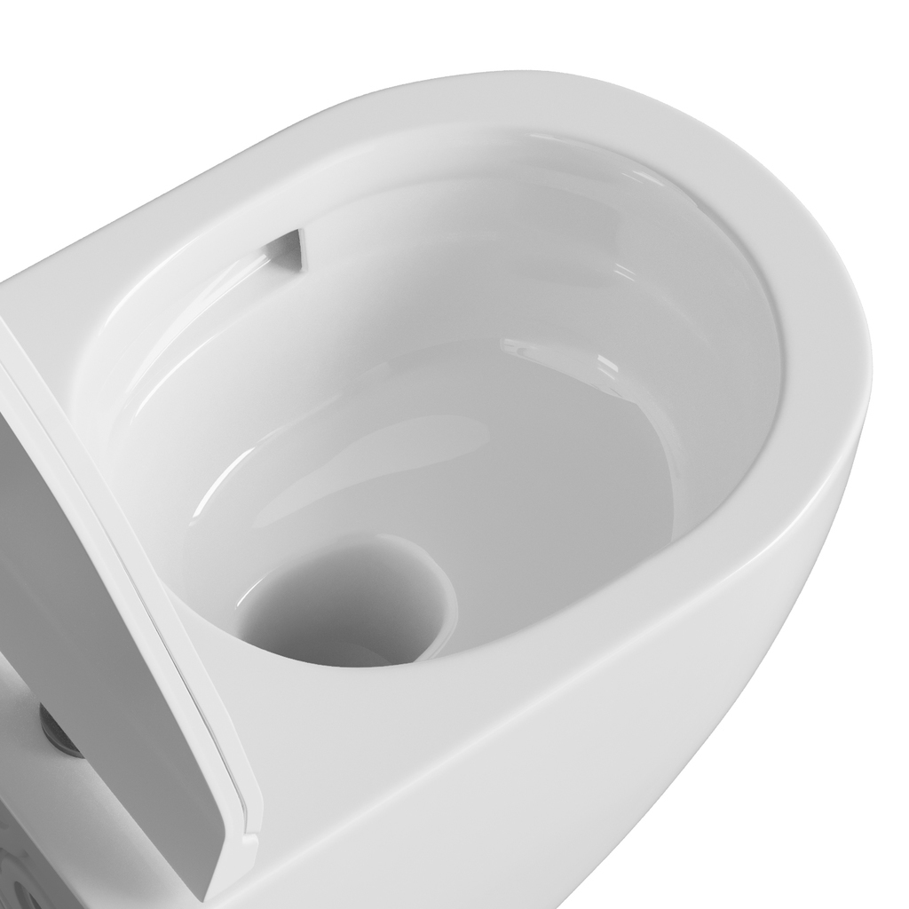• Безободковая чаша — исключает труднодоступные зоны, предотвращает скопление бактерий и упрощает уход