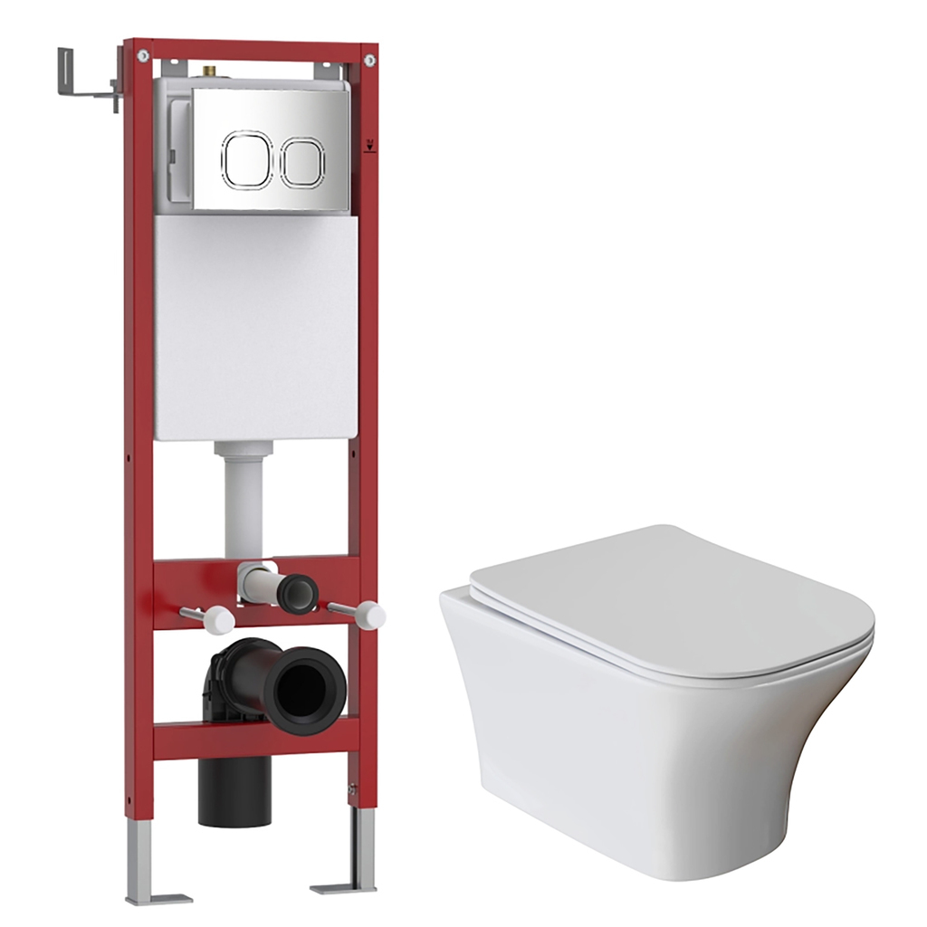 Комплект WAVE "Система инсталляции МЕХАНИКА 380+унитаз "CITY"+квадратная кнопка A3 хром"