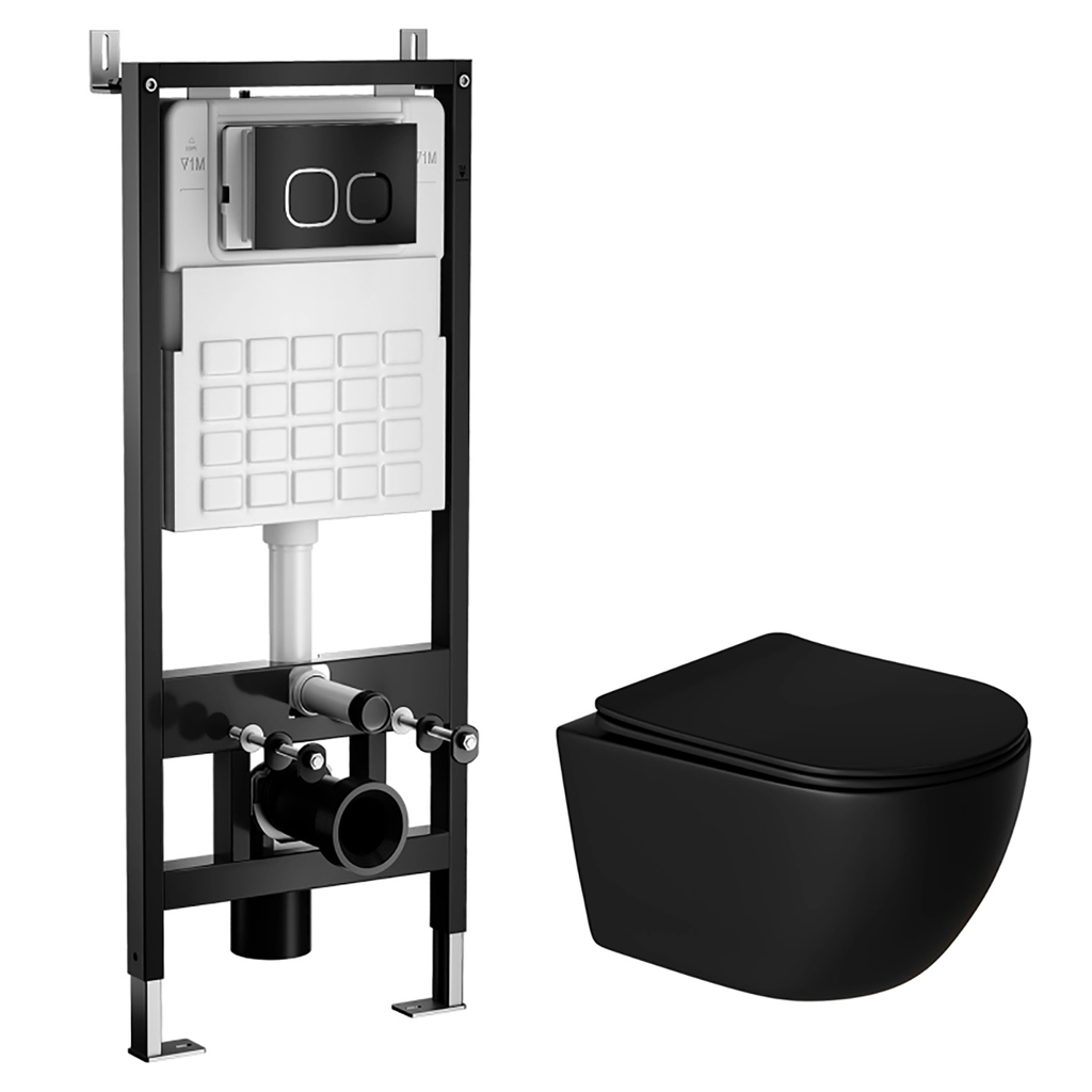 Комплект WAVE "Система инсталляции МЕХАНИКА 500+унитаз "ROUND" черный+квадратная кнопка A2 черная
