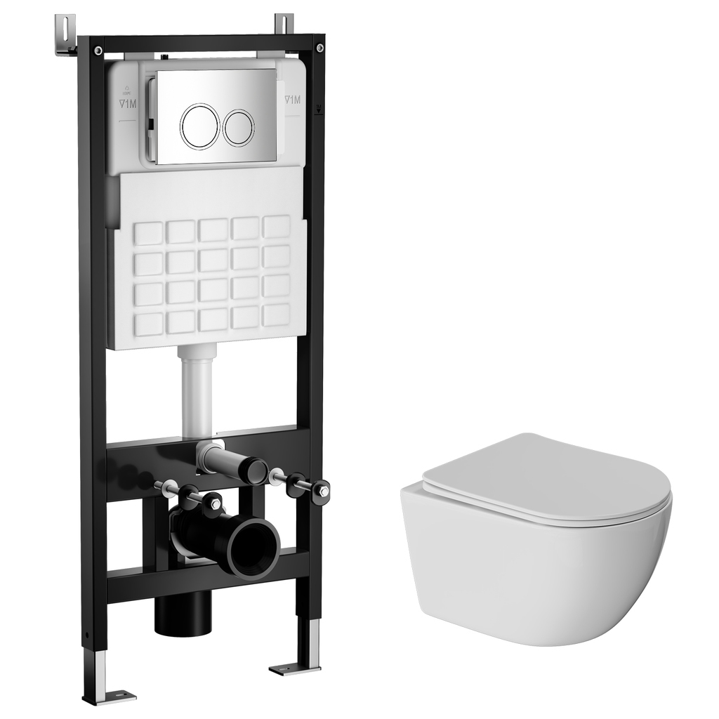 Полностью готовый для установки комплект WAVE состоит из системы инсталляции, двухрежимной кнопки с механической системой запуска смыва, безободкового унитаза "ROUND". В комплектацию входит все необходимое для установки.Преимущества инсталляции WAVE: