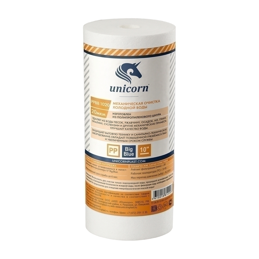 Картридж механический из полипропиленового шнура 10'' BB 20 мкм UNICORN (PP_BB_1020)
