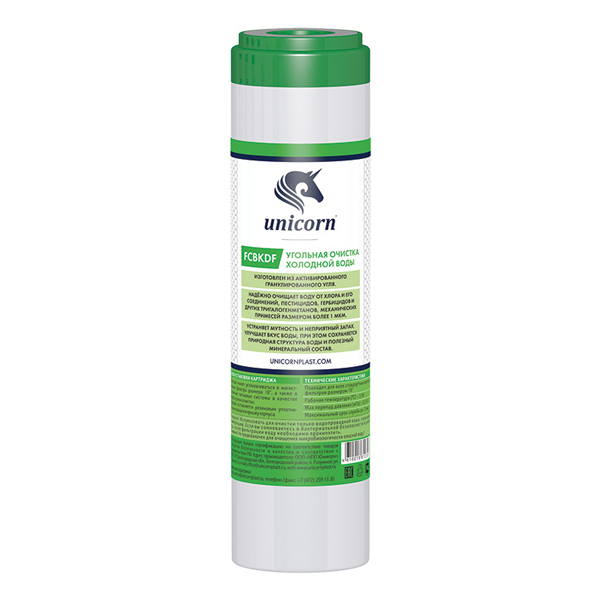 Изготовлен из активированного угля из скорлупы кокосовых орехов и сплава kdf-85. Надёжно очищает воду от хлора, пестицидов, гербицидов, механических примесей (>1мкм). Kdf-85 предназначен для удаления из воды железа, сероводорода, тяжелых металлов, также обладает бактерицидными свойствами, уничтожая бактерии и вирусы и блокируя механизмы размножения микроорганизмов. Картридж целесообразно применять при очень высоких концентрациях загрязнений.