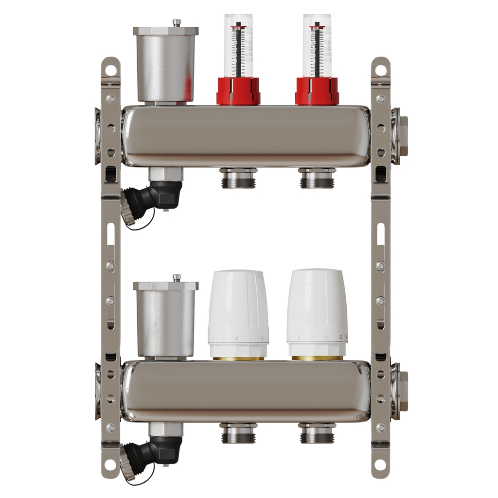 Коллекторная группа VRT® 1'' х 3/4'' (евроконус) 2 вых, авт в/отвод, c расходомерами