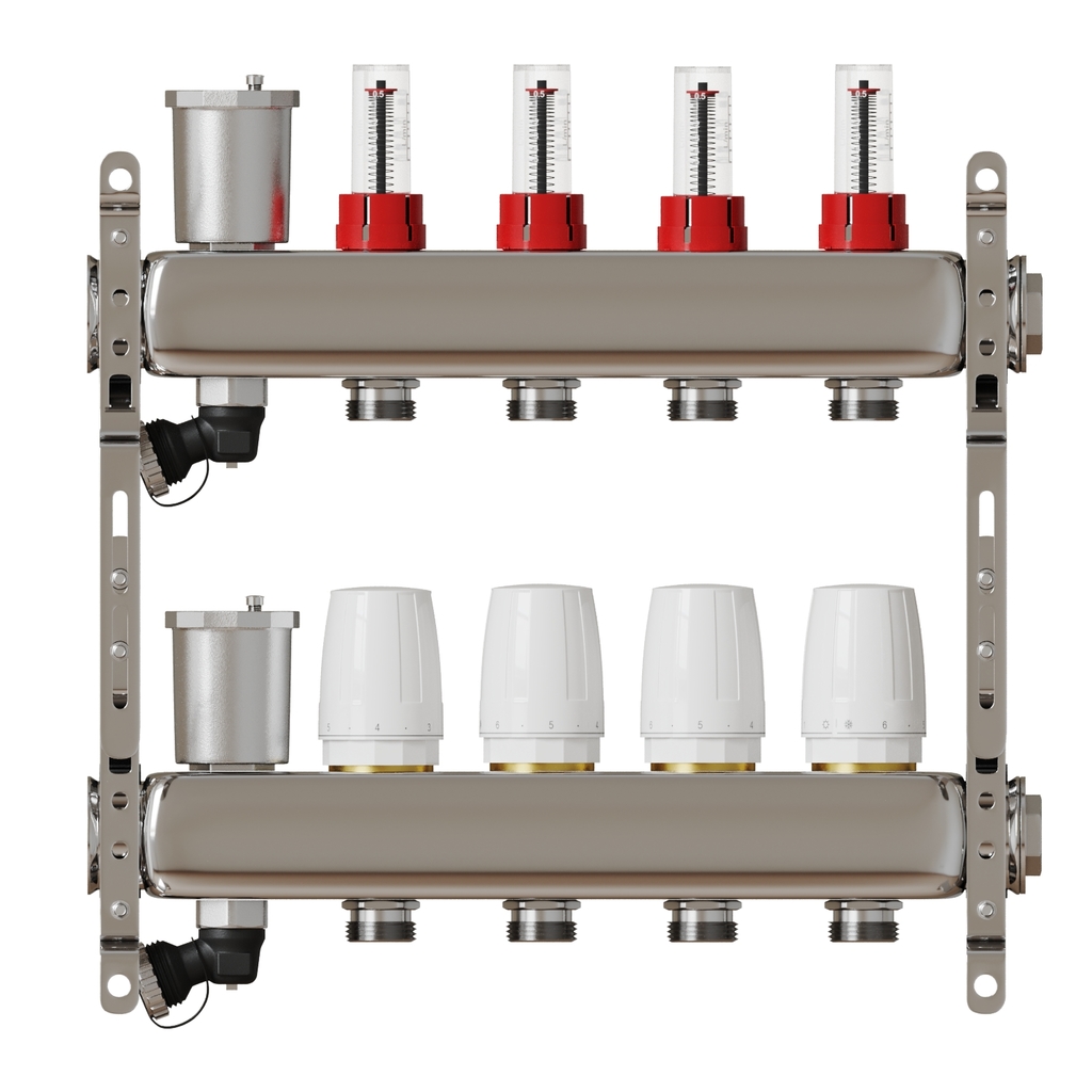 Коллекторная группа VRT® 1'' х 3/4'' (евроконус) 4 вых, авт в/отвод, c расходомерами