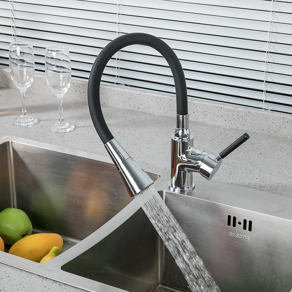Смеситель для кухни 35к F4044 FRAP (гибкий излив, 2х реж. аэратор, п/гайку, ЧЕРНЫЙ/ХРОМ, латунь)