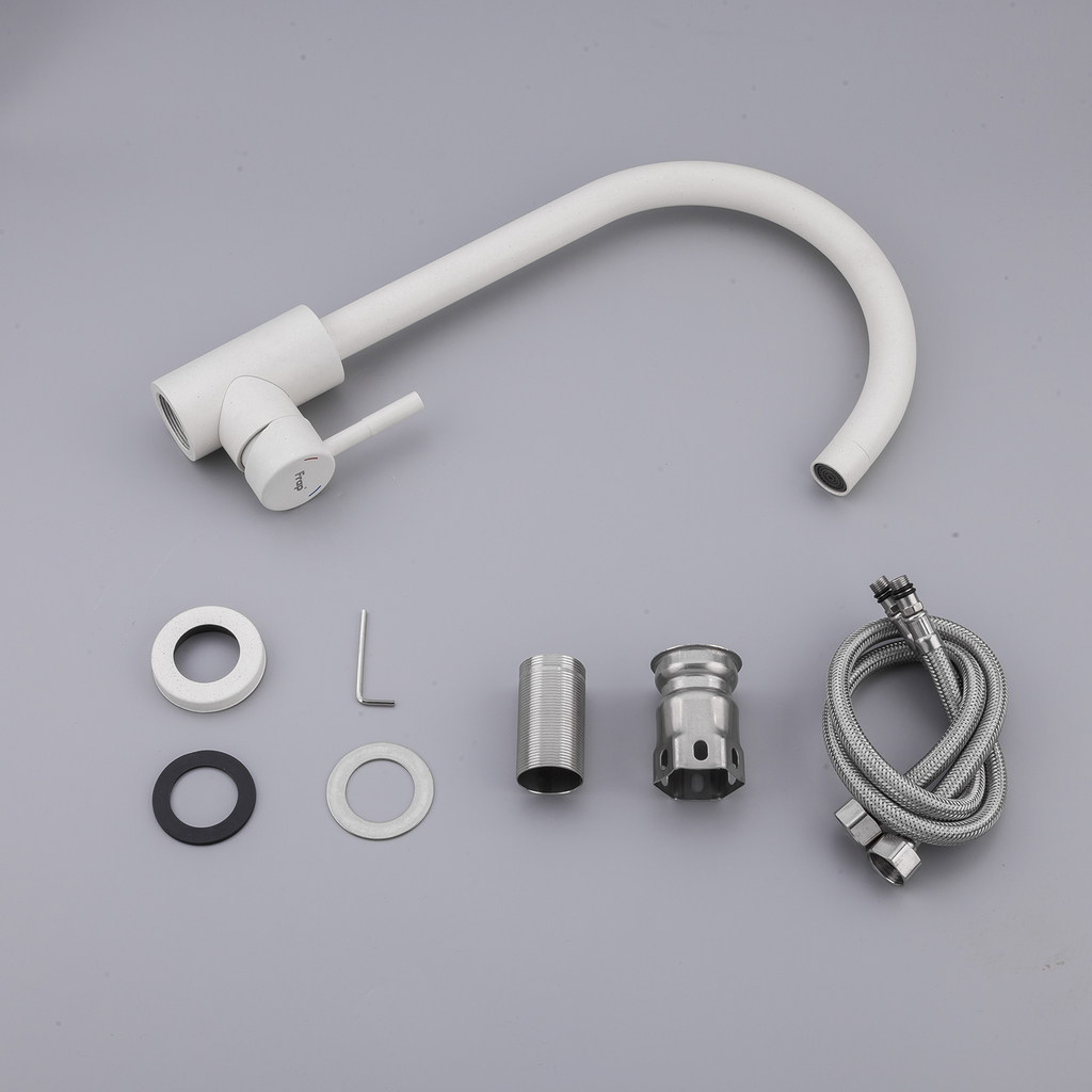 Смеситель для кухни 35к F40899-1 FRAP (выс.пов.излив, п/гайку, БЕЛЫЙ, нерж.сталь)