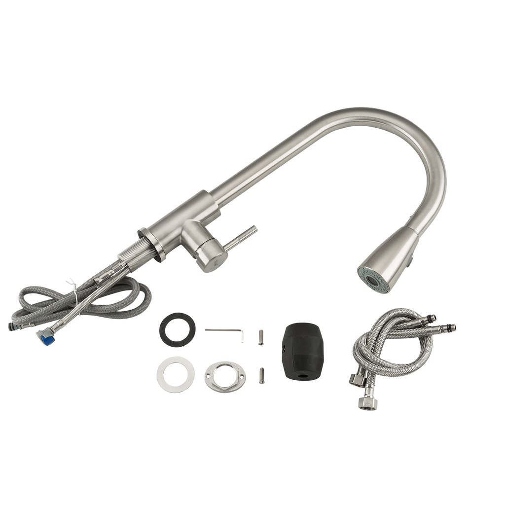 Смеситель для кухни душ 35к F60899-1 FRAP (выс.пов.излив, ВЫДВИЖ.ЛЕЙКА 2 реж, п/гайку, САТИН, нерж)