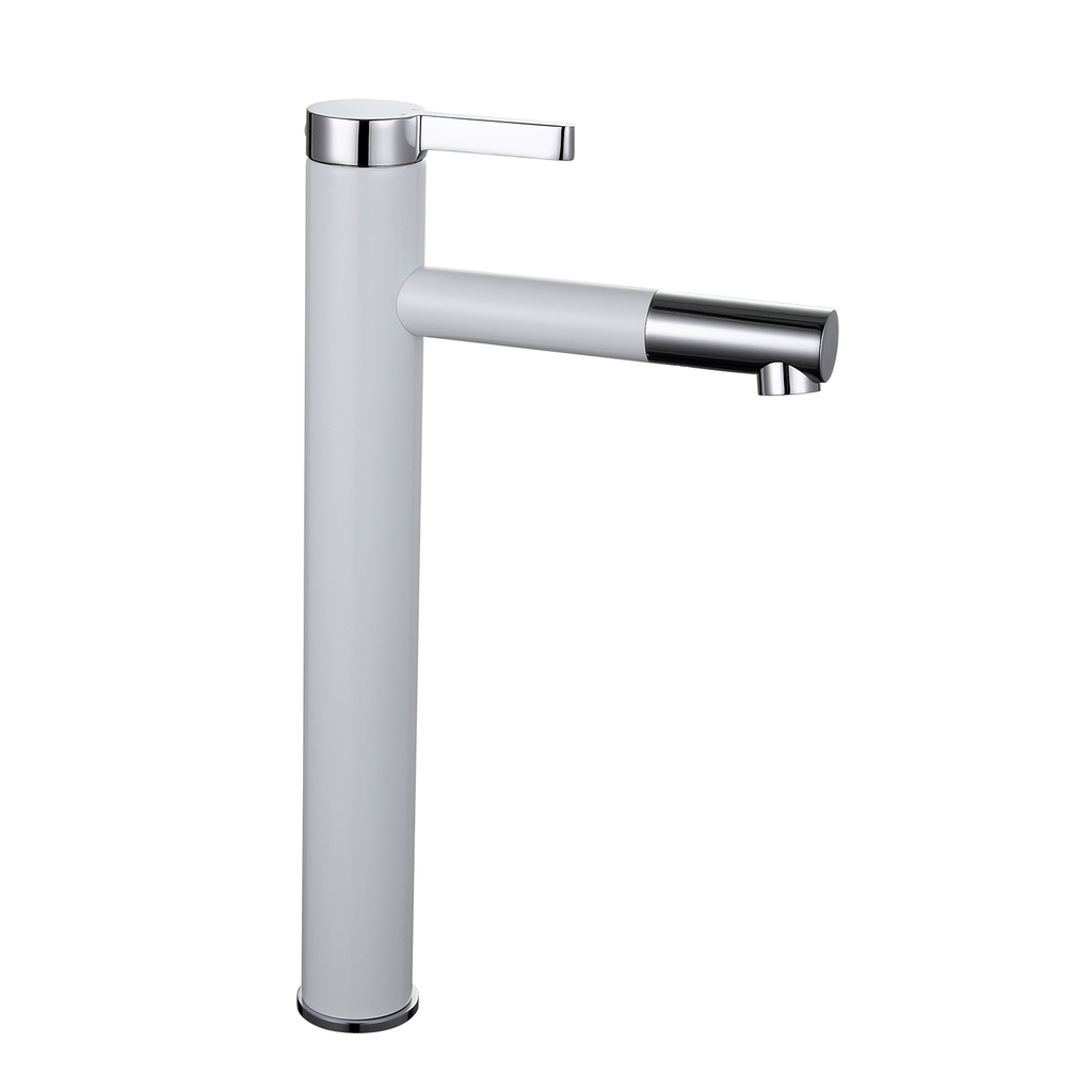 Смеситель для раковины 40к F1052-15 FRAP (высокий, литой, п/гайку, БЕЛЫЙ/ХРОМ, латунь)