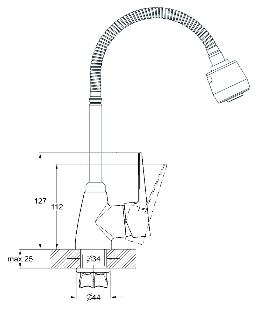 см-ль для кух. мойки, технология производства литьё под давлением, материал корпуса цинк (ZAMAK), с пов. гибким изливом 360°, картридж ?35, покрытие хром, крепление гайка корона- Производитель G-lauf