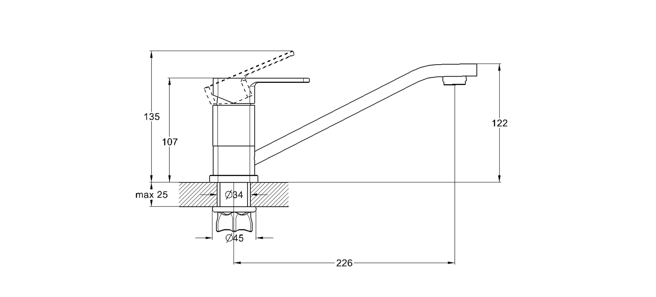 - Вращение излива Традиционный, поворотный
