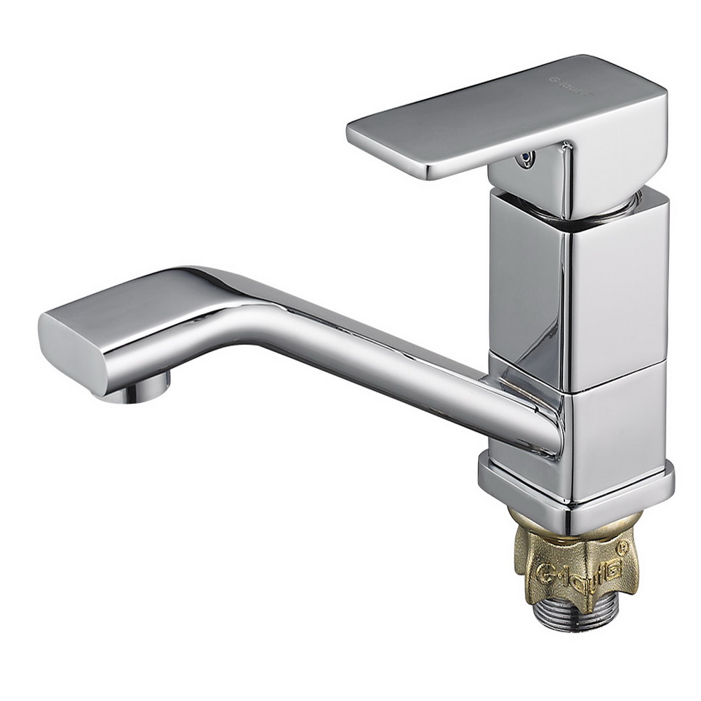 см-ль для кух. мойки / умывальника, техналогия производства литьё под давлением, материал корпуса цинк (ZAMAK), с пов. плоским изливом 150мм 360°, картридж ?40, покрытие хром, крепление гайка корона- Производитель G-lauf