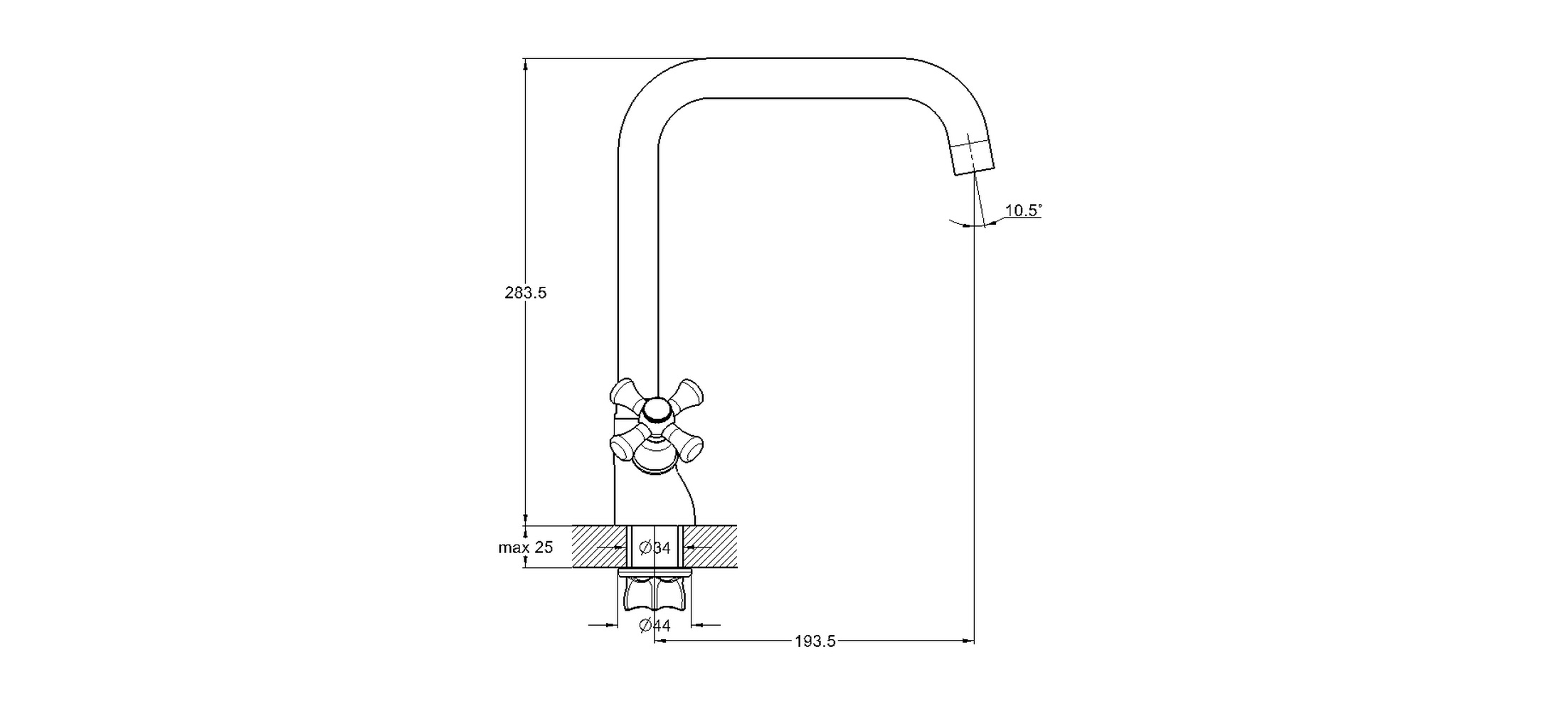 - Вращение излива Традиционный, поворотный
