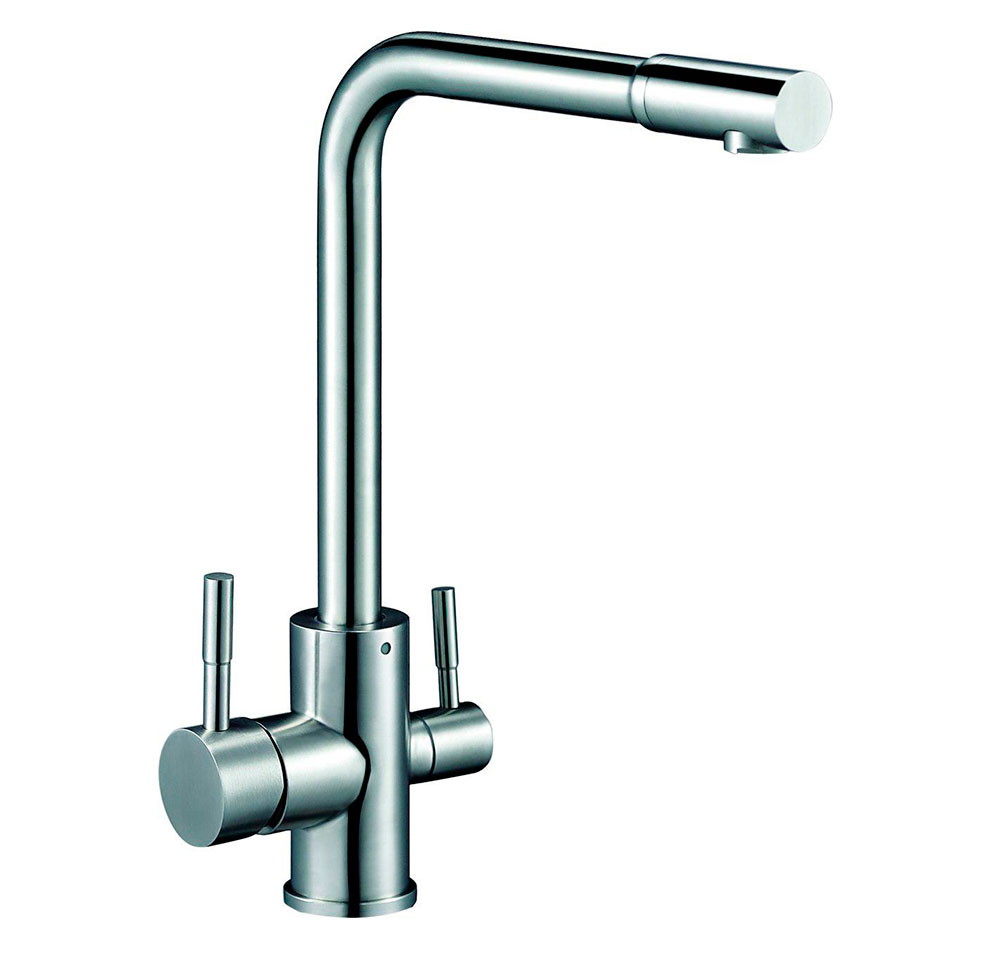 см-ль для кух. мойки, технология производства токарная обработка, материал корпуса нерж. cталь SUS 304 (пищевая), с пов. бикональным изливом 360° и подключением к фильтру с питьевой водой, картридж ?35 / ?25, без покрытия, крепление гайка-втулка- Производитель G-lauf
