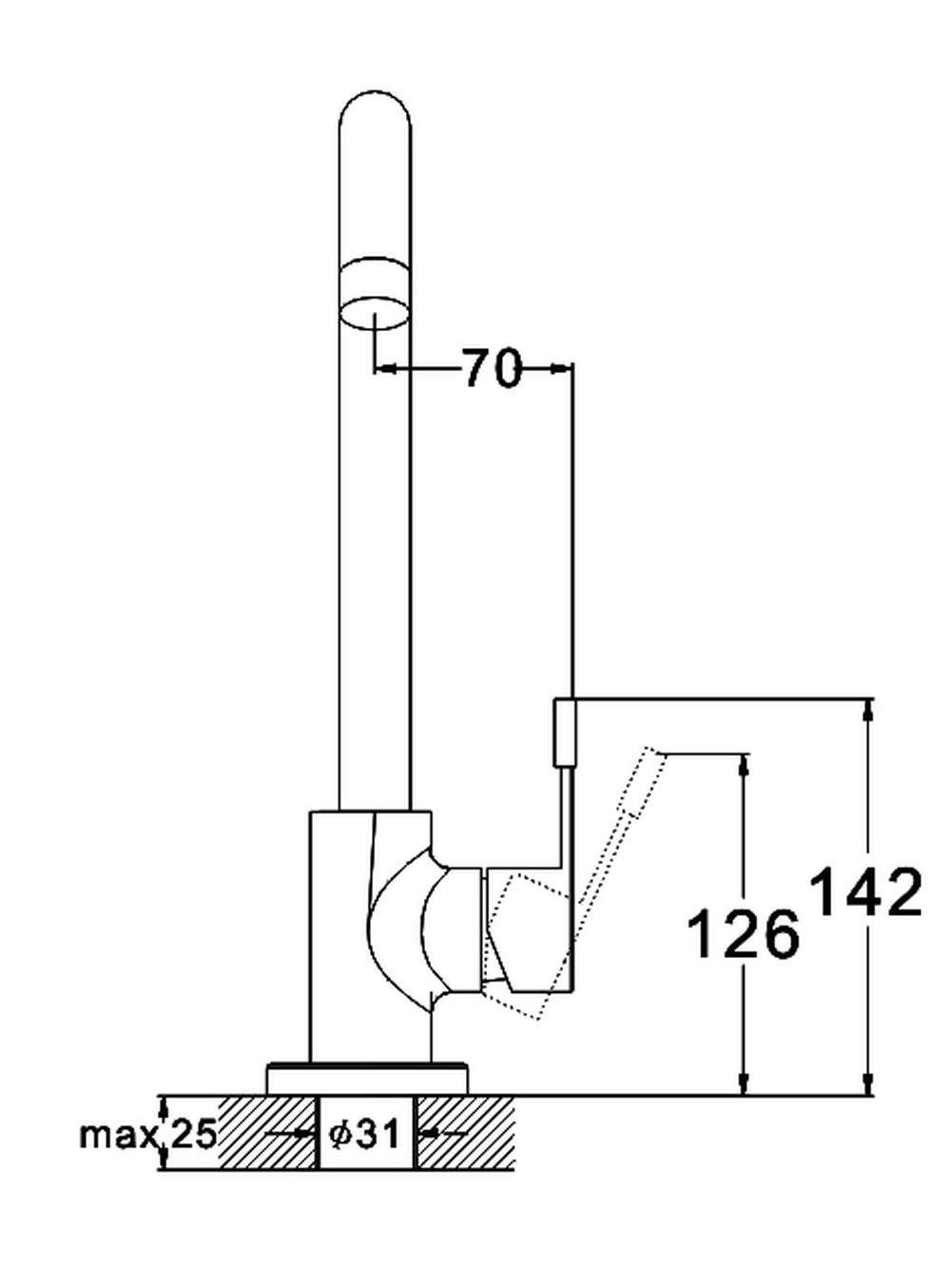 - Вращение излива Традиционный, поворотный