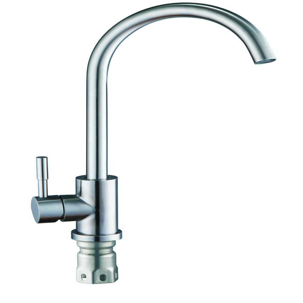 см-ль для кух. мойки, технология производства токарная обработка, материал корпуса нерж. cталь SUS 304 (пищевая), с пов. круглым изливом 360°, картридж ?35, , без покрытия, крепление гайка-втулка- Производитель G-lauf