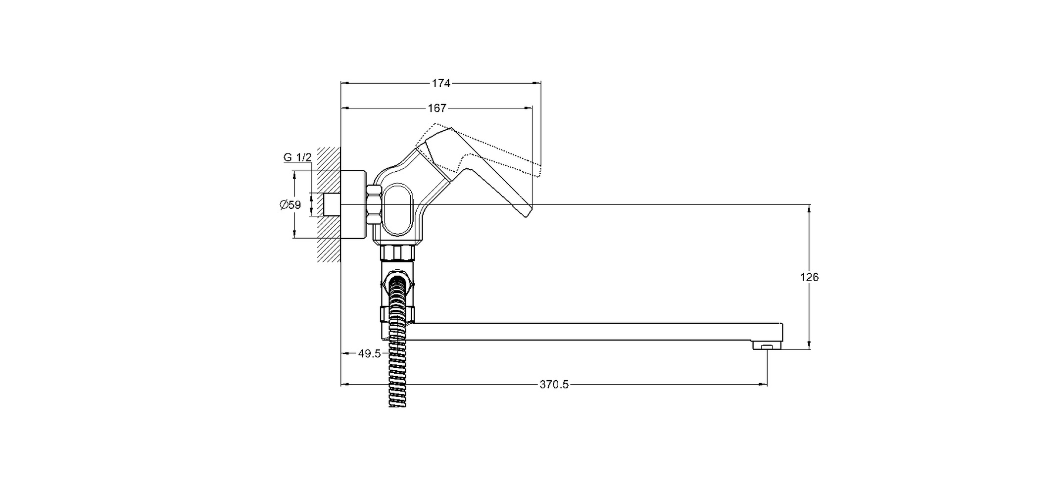 - Тип подводки Лейка, шланг 1,5 м, держатель
