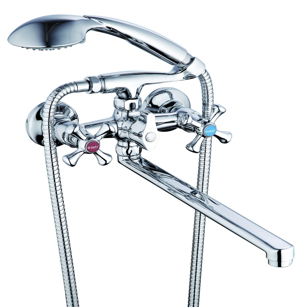 см-ль для ванной, технология производства литьё в песчаную форму, материал корпуса латунь (Lt), с пов. плоским изливом 360°, керамическая букса (1/2) 180°, покрытие хром, двухпозиц. картриджное переключение на душ- Производитель G-lauf