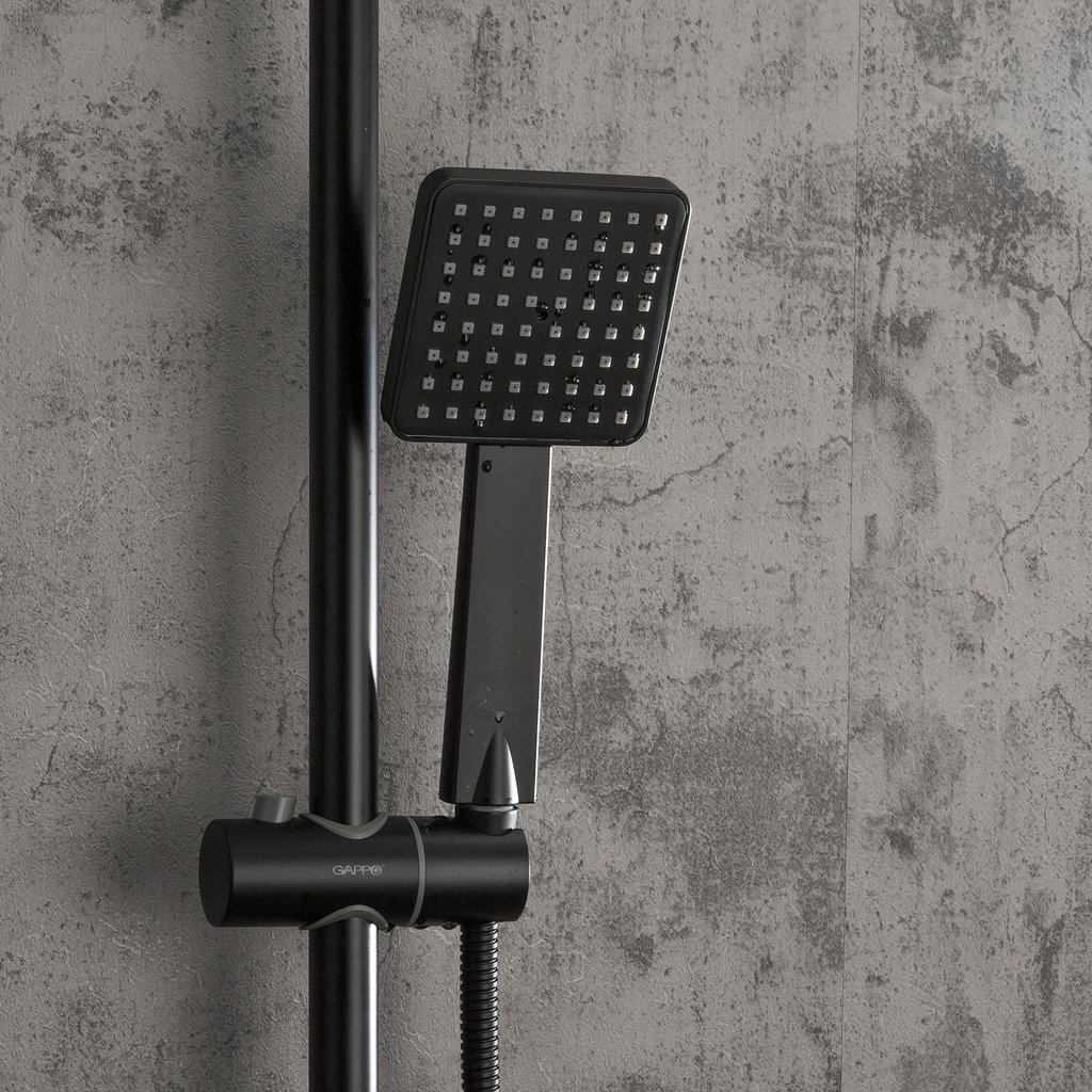 Душевая система термостат G2491-6 GAPPO лейка "Тропический душ" квадрат 250*250 ЧЕРНЫЙ