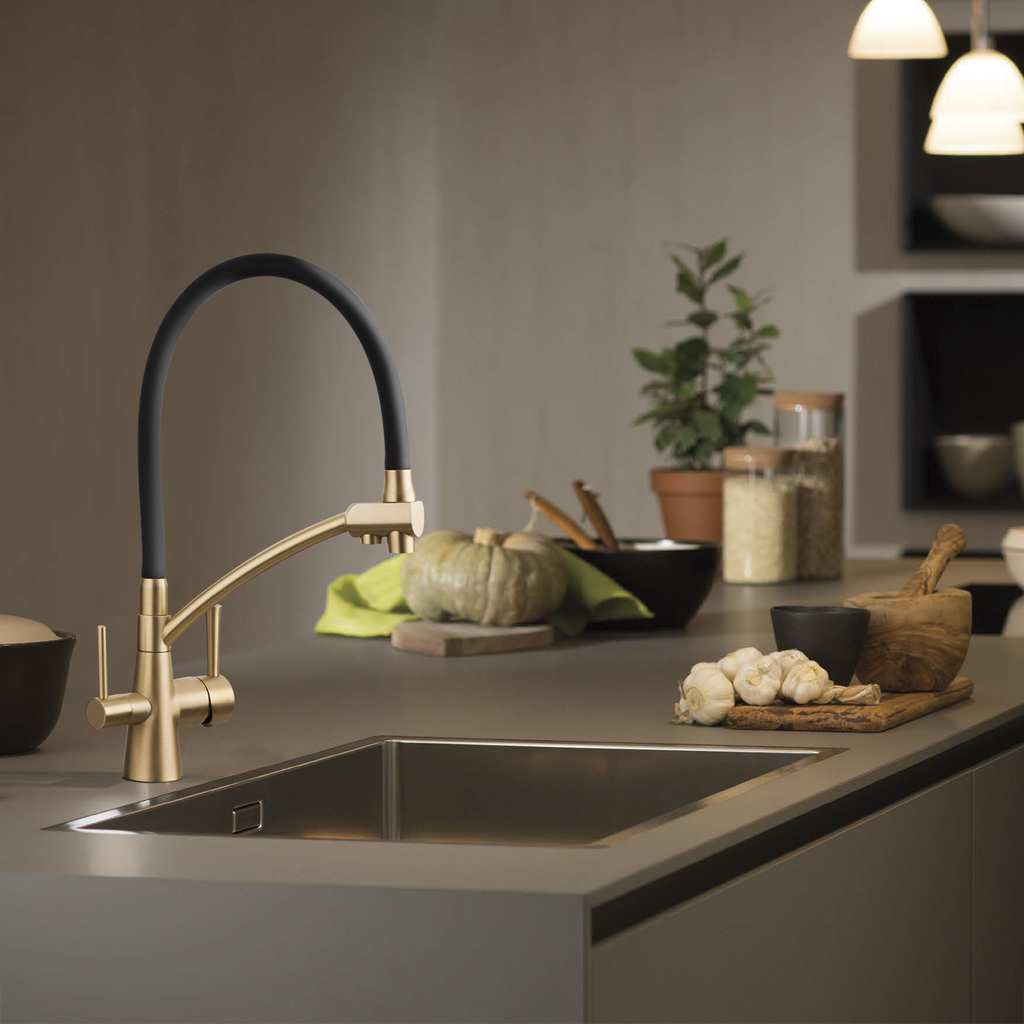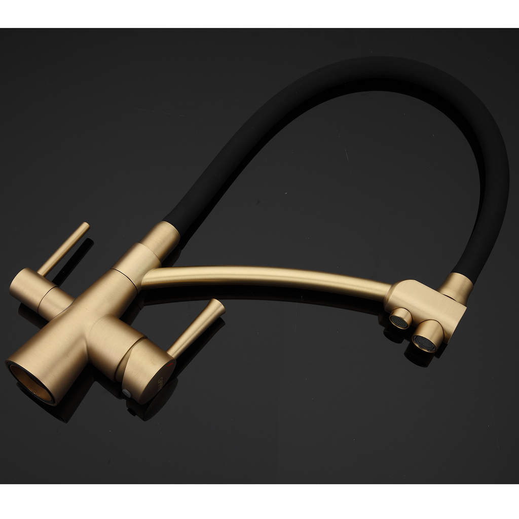 Смеситель для кухни 35к G4398-1 GAPPO гибкий излив, с вых. для питьевого фильтра, ЧЕРНЫЙ-Бронза