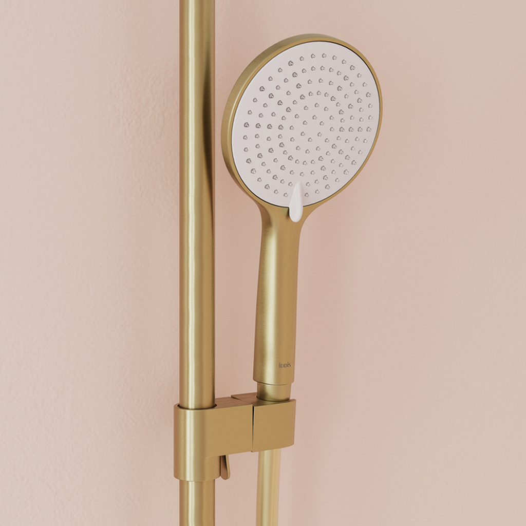 Поток воды переключается поворотным керамическим дивертором на стойке – он повторяет дизайн ручки, выглядит стильно и элегантно.