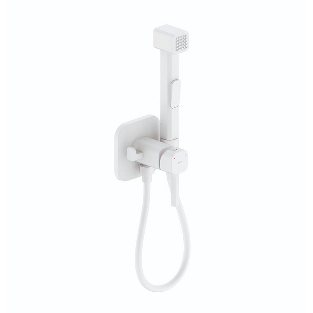 Встраиваемый смеситель с гигиеническим душем со стильным белым матовым покрытием подойдет для современной туалетной комнаты, привнесет в нее комфорт и эстетику. Крючок на корпусе смесителя позволит разместить полотенце – оно будет всегда под рукой. Держатель для лейки и крючок для полотенца при необходимости можно поменять местами. Гигиеническая лейка и гладкий душевой шланг длиной 1,2 метра поставляются в комплекте.Плавный ход ручки и абсолютная точность регулировки температуры и напора воды достигаются за счет качественного керамического картриджа Softap.