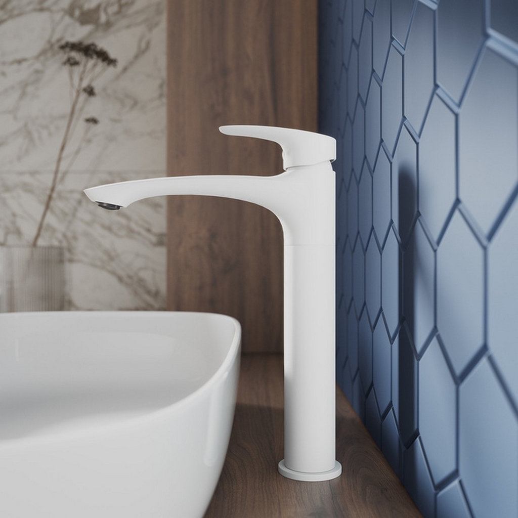 Смеситель для умывальника RORWT01M01 в белом цвете смотрится гармонично как на традиционных белых умывальниках, так и на контрастных моделях. Конструкция высокого смесителя обеспечивает дополнительный комфорт в ежедневном использовании и подходит для установки с накладными умывальниками.