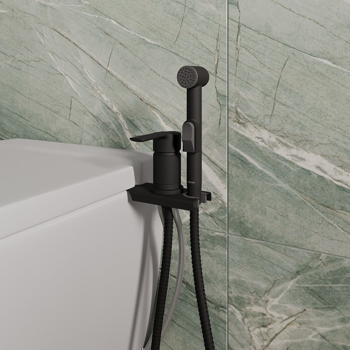 Смеситель с гигиеническим душем 35к Milardo 001BL00M08 "Tidy" установка на унитаз, ЧЕРНЫЙ матовый
