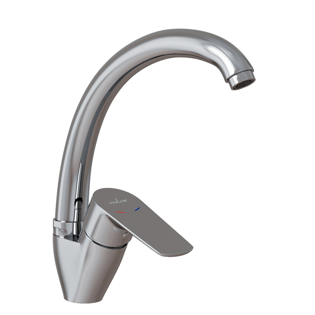 Смеситель для кухни 35k MIXLINE ML14-031 высокий излив б/отв боковая п/гайку (без подводки)