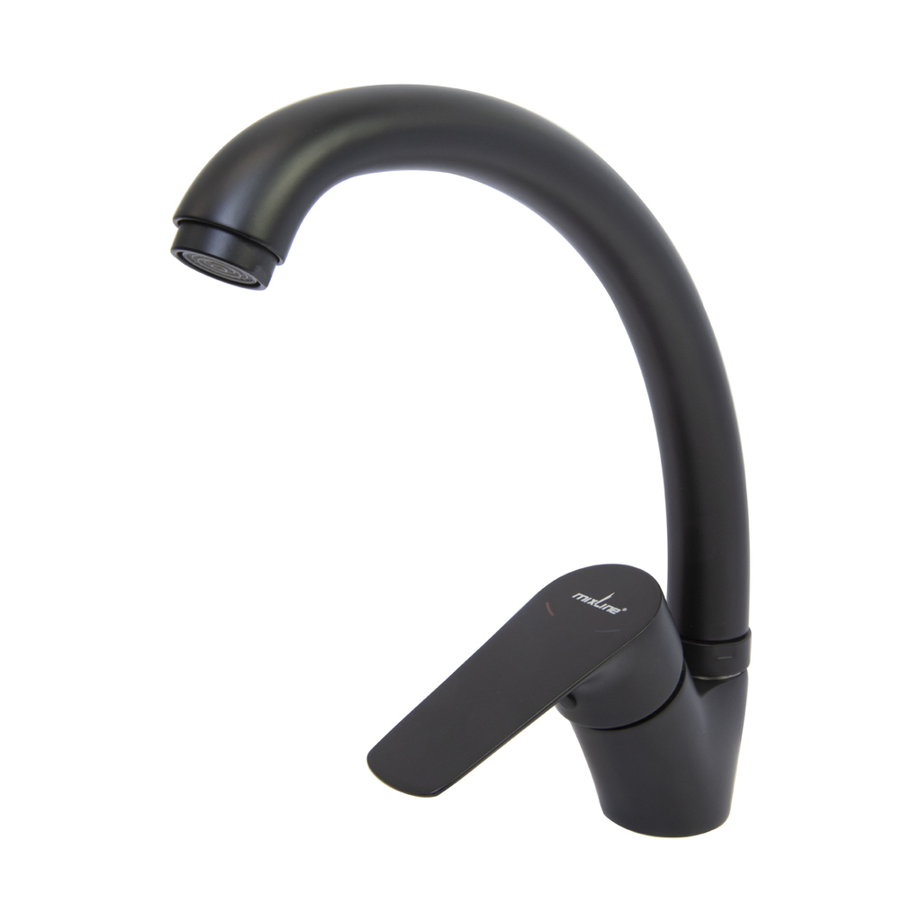 Смеситель для кухни 35k MIXLINE ML14-031BL высокий излив б/отв боковая п/гайку ЧЕРНЫЙ (без подводки)